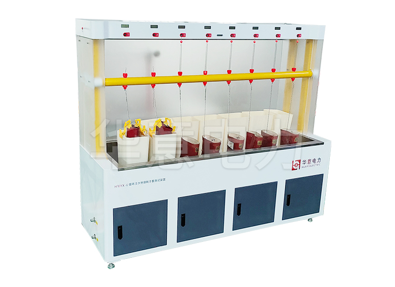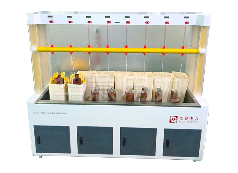 絕緣靴絕緣手套的測試一直是操作繁瑣、耗費體力、工作量大的高壓試驗項目,符合國標DL/T 1476-2023《電力安全工器具預防性試驗規程》要求。我公司推出的HYJYX-V 循環(huán)注水絕緣靴手套測試裝置已經(jīng)解決了測量準確性、操作安全性和工作高效性的問(wèn)題,但試品內電極注水的還采用人工操作型式。為了進(jìn)一步提高工作效率減輕操作人員的勞動(dòng)量,研發(fā)了HYJYX-V 循環(huán)注水絕緣靴手套測試裝置,它采用臺式結構,8個(gè)試品單列排放,適合靠墻放置。測試臺絕緣靴及絕緣手套放置在測試臺面上,操作方便不需要彎腰,減輕了勞動(dòng)強度。它有干試和濕試兩種工作模式,測試臺裝有電動(dòng)注水水槍?zhuān)阌谠嚻纷⑺僮鳎稍嚂r(shí),備有鋼珠可以作為絕緣靴的高壓電極。