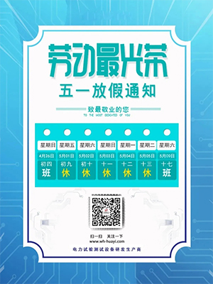 【通知】華意電力 | “五一”放假通知來(lái)襲~ 提前祝大家節日快樂(lè )!