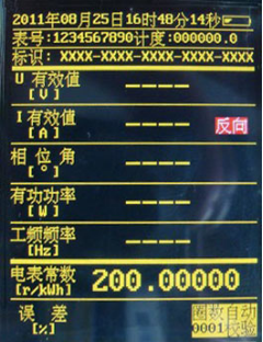 顯示:主顯界面分為三個(gè)區間:頂部為標識區——顯示時(shí)間、電能表信息、抄表信息及電池電量等。中部為實(shí)測交流參數區:顯示U、I、φ(相位角)、有功功率和工頻頻率。