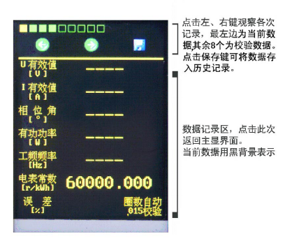 點(diǎn)擊左移鍵或者右移鍵可依次調出最近時(shí)段內不同時(shí)刻記錄的校驗數據(它包括了校驗誤差和交流電壓、電流、功率等參數)。儀器最多可保留9組數據,校驗脈沖少于8次時(shí),臨時(shí)數據區會(huì )有空白。多于8次時(shí),臨時(shí)數據區滿(mǎn),較早的數據會(huì )自動(dòng)溢出。