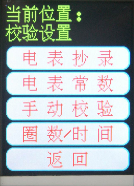 校驗設置用于設置校驗參數及抄錄當地電表信息,從主菜單進(jìn)入,其進(jìn)入路徑如P19頁(yè)所示。校驗參數的設置共分為4項: