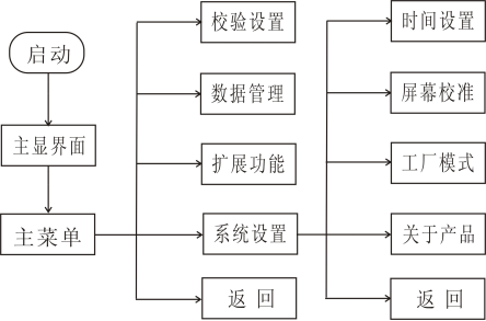 儀器通電后經(jīng)啟動(dòng)界面進(jìn)入主界面,儀器的測量數據全部在主顯界面顯示。同時(shí),儀器的主菜單和即時(shí)操作也由主界面導入。