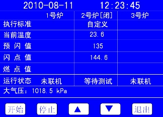 ◆按“退出”鍵儀器退出測試狀態(tài),所有的測試爐停止任何動(dòng)作返回到畫(huà)面6-1。