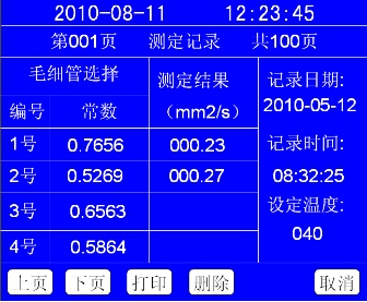 “保存”:全部實(shí)驗做完以后,如果能計算出運動(dòng)粘度的測定結果,這時(shí)您可以按“保存”鍵進(jìn)行保存。記錄就按您保存時(shí)的時(shí)間進(jìn)行保存。