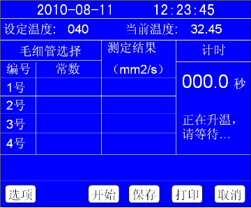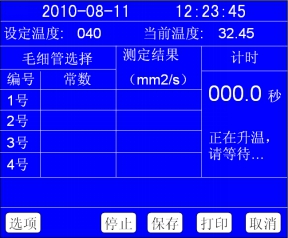 按“測定”下面的白板按鍵,可以進(jìn)入運動(dòng)粘度測定畫(huà)面;