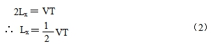 當線(xiàn)路輸入一個(gè)脈沖電波時(shí),該脈沖便以速度V沿線(xiàn)路傳輸,當行Lx距離遇到故障點(diǎn)后被反射折回輸入端,其往返時(shí)間為T(mén),則可表示為: