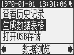 3.?在“數據瀏覽“界面,按【▼】箭頭鍵向下移動(dòng)光標到“生成數據表格”子菜單第二項,按【OK】鍵生成數據表格;