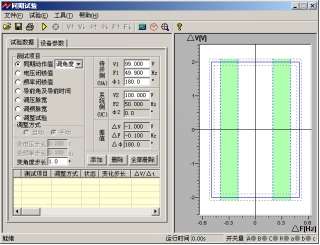 ???根照同期裝置的整定值,設置△V、△F、△Fmin、△Fmax以及△φ的值。注意這些值在試驗過(guò)程中只起參考作用,不影響試驗。設置完之后,可以在右側的圖中實(shí)時(shí)觀(guān)察到相應的效果圖。在試驗過(guò)程中將看到試驗軌跡。