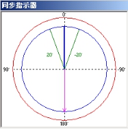???試驗期間點(diǎn)擊“同步指示器”按鈕打開(kāi)同步指示器,能觀(guān)察到待并側與系統側在試驗過(guò)程中的電壓幅值、頻率與相角的變化矢量圖。如右圖所示: