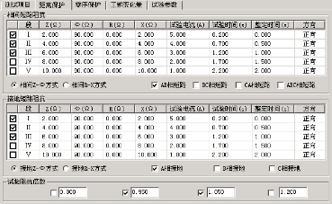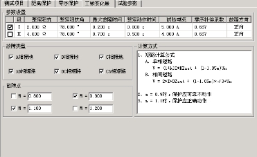 本模塊允許同時(shí)校驗兩段定值,并且一次性模擬所有故障類(lèi)型。試驗時(shí),只需要勾選需要測試的項目,然后按定值單將各種定值參數依次進(jìn)行設置即可。