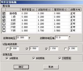 做完阻抗定值校驗后,請退出距離保護壓板并投入零序保護壓板,否則容易造成兩種保護搶動(dòng)的現象。選擇“零序電流定值校驗”測試項目后,單擊“添加”按鈕,彈出的對話(huà)框如右圖所示: