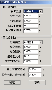 重合前故障的“最大故障時(shí)間”應大于設置的短路電流或短路阻抗對應的保護段的整定動(dòng)作時(shí)間,重合后故障的“最大故障時(shí)間” 應大于設置的短路電流或短路阻抗對應的加速保護段的加速延時(shí)。“重合閘等待時(shí)間”應大于重合閘整定時(shí)間。
