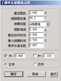 M的值默認情況下有0.9和1.1兩種設置,一般地,M=0.9時(shí),保護應可靠不動(dòng)作,M=1.1時(shí),保護應可靠動(dòng)作。設置M=1.2時(shí),可以測出保護的動(dòng)作時(shí)間。點(diǎn)擊界面中“提示”按鈕可以獲得更多提示。