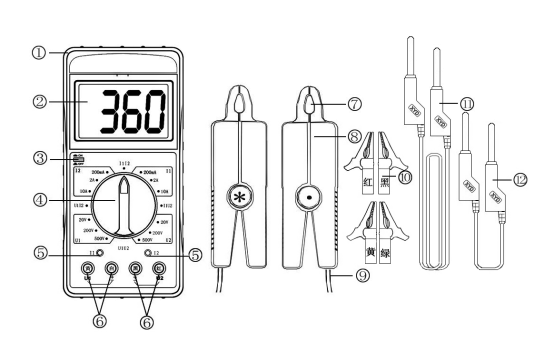 ?????測U1-I2 或 I1-U2 相位時(shí):10V~500V、10mA~10.00A