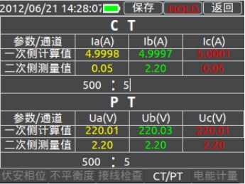 進(jìn)入CT/PT界面可以設置變比值,輕觸變比值的位置,系統彈出設置鍵盤(pán)進(jìn)行設置。