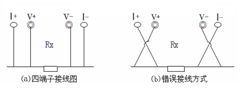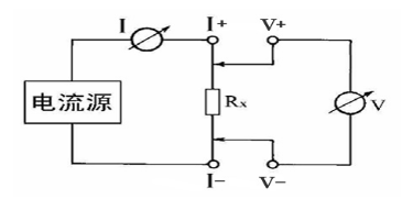 ????由電流源經(jīng)“I+、I-兩端口(也稱(chēng)I型口),供給被測電阻Rx電流,電流的大小有電流表I讀出,Rx兩端的電壓降“V+、V-”兩端口(也稱(chēng)V型口)取出,由電壓表V讀出。通過(guò)對I、V的測量,就可以算出被測電阻的阻值。