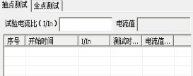 數據區:該區域用戶(hù)需要選擇測試方式:抽點(diǎn)測試和全點(diǎn)測試。抽點(diǎn)測試是根據測試需要由用戶(hù)根據被測試直流斷路器的額定電流,確定測試電流,一般微型斷路器測試電流≥3In,塑殼斷路器測試電流≥5In。若選擇抽點(diǎn)方式表格上顯示的測試數據分5類(lèi)(如圖16):序號、開(kāi)始時(shí)間、實(shí)驗電流比、測試時(shí)長(cháng)和