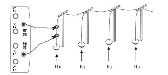 雖然,從嚴格的接地理論來(lái)說(shuō),由于有所謂的“互電阻”的存在,R0并不是通常的電工學(xué)意義上的并聯(lián)值(它會(huì )比電工學(xué)意義上的并聯(lián)值稍大),但是,由于每一個(gè)桿塔的接地半球比起桿塔之間的距離要小得多,而且畢竟接地點(diǎn)數量很大,R0要比R1小得多。因此,可以從工程角度有理由地假設R0=0。這樣,我們所測的電阻就應該是RX了,即RT≈Rx。