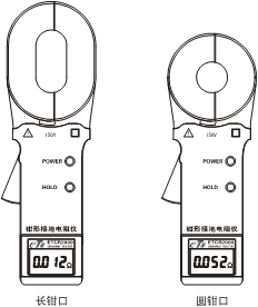 ETCR2000系列有長(cháng)鉗口及圓鉗口之分,見(jiàn)下圖。長(cháng)鉗口特別適宜于扁鋼接地的場(chǎng)合。