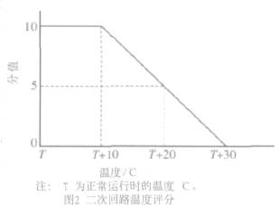 ? 對保護屏端子排以及現場(chǎng)端子箱內端子排進(jìn)行溫度測量,能在一定程度上反映二次回路的工作狀況, 度過(guò)高往往都是由于端子松動(dòng)、接觸不良引起。當發(fā)現電流回路比正常溫度高2 0℃時(shí),就要引起注意,考慮是否對電流回路進(jìn)行檢查。二次回路紅外溫度評分標準按圖1 執行,以斜率計算得分。