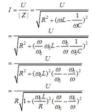 (2)串聯(lián)諧振時(shí),阻抗最小,在電壓U一定時(shí),電流最大,其值為