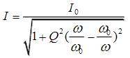 上式表明了R-L-C串聯(lián)回路中的電流I和角頻率?的函數關(guān)系,對于一個(gè)給定自的電路來(lái)說(shuō),諧振電流0I是—個(gè)常數。因此,從式中可以看出,電流對頻率的變化關(guān)系與品質(zhì)因數Q有關(guān)。我們給出幾個(gè)不同的Q位,例如取Q為10、50、100等等,并將上式改寫(xiě)成以下的形式。