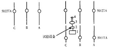 ? 試驗設備放置在5011與5012的B,C相之間,試驗設備與3組電流互感器的位置如圖2所示: