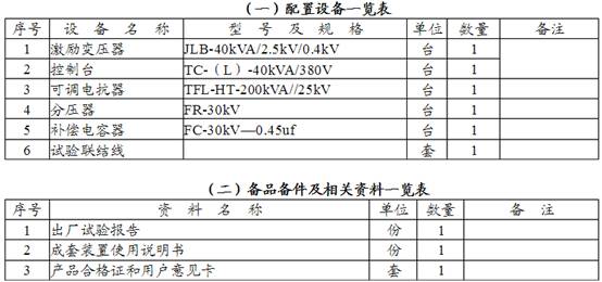 1.?激勵變壓器JLB-40kVA//2.5kV/0.4kV???????????1臺?