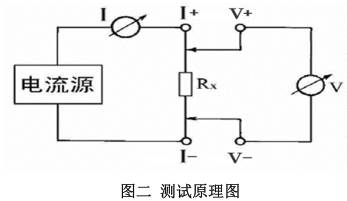 ? 由電流源經(jīng)“I+、I-兩端口(也稱(chēng) I 型口),供給被測電阻 Rx 電流,電流的大小有電流表 I 讀出,Rx 兩端的電壓降“V+、V-”兩端口(也稱(chēng) V 型口)取出,由電壓表 V 讀出。通過(guò)對 I、V 的測量,就可以算出被測電阻的阻值。
