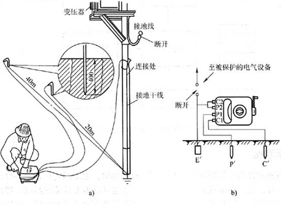 3)將接地干線(xiàn)與接地體的連接點(diǎn)或接地干線(xiàn)上所有接地支線(xiàn)的連接點(diǎn)斷開(kāi),使接地體脫離任何連接關(guān)系成為獨立體。???