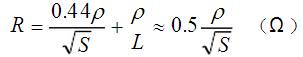 ? 式中:L為接地網(wǎng)導體總長(cháng)度(包括水平和垂直接地體)(m),S為地網(wǎng)總面積(m2),ρ為土壤電阻率。可見(jiàn),當ρ一定時(shí),接地網(wǎng)的接地電阻基本由地網(wǎng)面積決定。