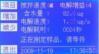 4、儀器檢測到加入的樣品后,將開(kāi)始電解過(guò)程,累加含水量。