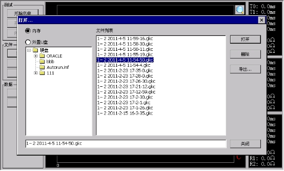 7.點(diǎn)擊“文件打開(kāi)”可以查詢(xún),保存 刪除 導出數據。