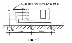 用專(zhuān)用導線(xiàn)將地阻儀端子E(C2、P2)、P1、C1與探針所在位置對應聯(lián)接。