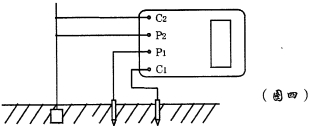 2、測量保護接地電阻時(shí),一定要斷開(kāi)電氣設備與電源連接點(diǎn)。在測量小于1Ω的接地電阻時(shí),應分別用專(zhuān)用導線(xiàn)連在接地體上,C2在外側P2在內側如圖四所示: