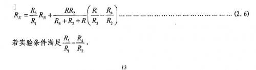 在實(shí)驗中,固定凡和凡,調節凡和凡,使電橋平衡,運用公式即可計算出被側電阻凡的阻值.