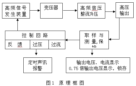 ZGS系列直流高壓發(fā)生器應用最新電力電子技術(shù),采用先進(jìn)的PWM調制技術(shù)及大功率MOSFET器件,通過(guò)中頻倍壓整流而成;該發(fā)生器具有紋波系數小、輸出穩定可靠,體積小、重量輕的特點(diǎn),且具有可靠、靈敏的內部保護功能,其原理框圖如圖1所示。