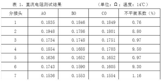 (2)A相偶數分接的直流電阻大于同相相鄰的直流電阻。