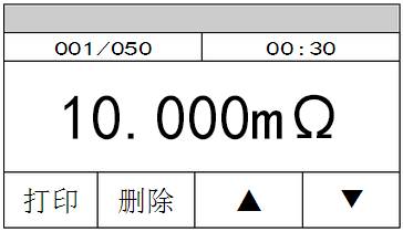 在狀態(tài)欄的左部顯示的是當前數據的總序號和已存儲數據的總量,如果當前數據是在溫升試驗方式測量時(shí)保存的,則在狀態(tài)欄右部顯示記錄時(shí)的時(shí)間,如果是在普通試驗方式下保存的,則無(wú)時(shí)間顯示。您可以通過(guò)“▲”和“▼”鍵依次查看存儲的所有數據。