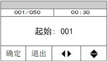 打印之前您需要設置需打印數據的起始序號和結束序號,使用“”鍵在序號的各位之間切換,使用“”鍵改變各位的數字大小,設置完成后按“OK”鍵確認。