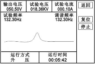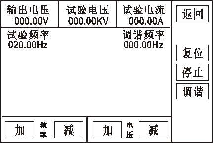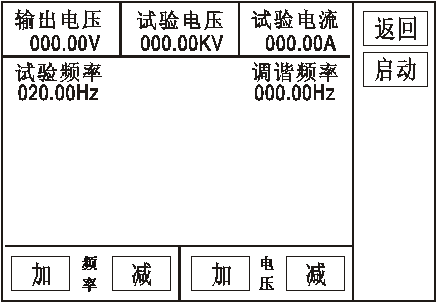 手動(dòng)試驗:點(diǎn)擊頻率“加、減”,則手動(dòng)調諧,調諧完成后點(diǎn)擊電壓“加、減”手動(dòng)升壓。