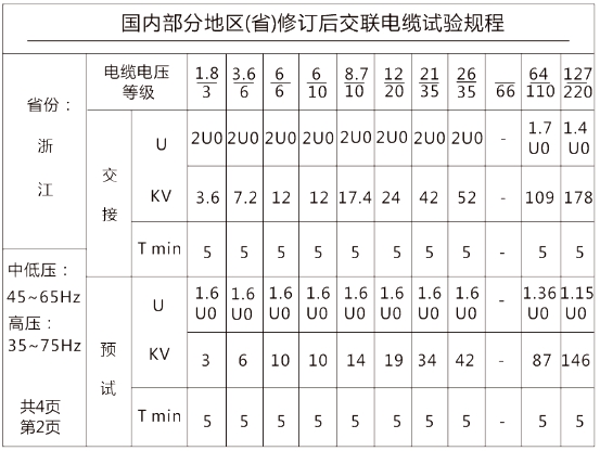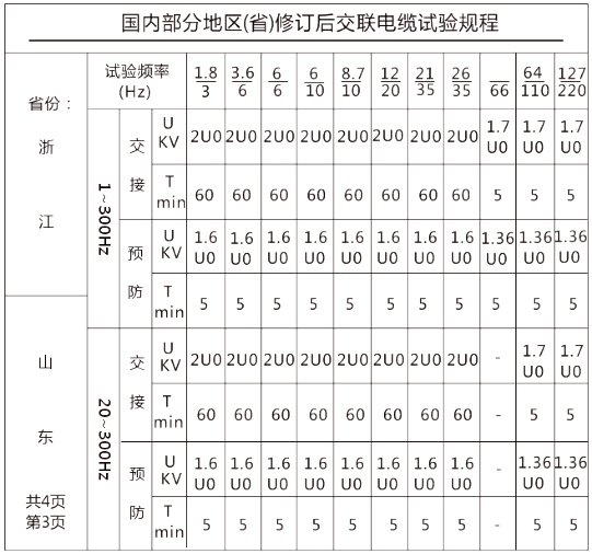 7.1 相關(guān)省份電纜試驗規程