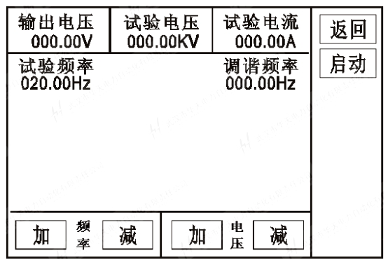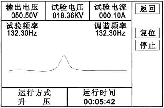 手動(dòng)試驗:點(diǎn)擊頻率“加、減”,則手動(dòng)調諧,調諧完成后點(diǎn)擊電壓“加、減”手動(dòng)升壓。