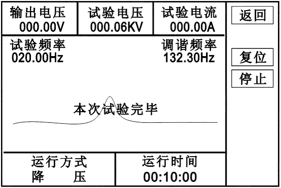 半自動(dòng)試驗:點(diǎn)擊“調諧”,則自動(dòng)調諧,調諧完成后點(diǎn)擊電壓“加、減”手動(dòng)升壓。