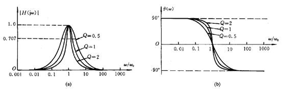對不同Q值畫(huà)出的幅頻特性曲線(xiàn),如圖12-24所示。此曲線(xiàn)橫坐標是角頻率與諧振角頻率之比(即相對頻率),縱坐標是轉移電壓比,也是相對量,故該曲線(xiàn)適用于所有串聯(lián)諧振電路,因而被稱(chēng)為通用諧振曲線(xiàn)。