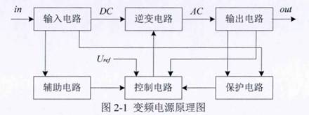 變頻電源原理圖如圖2-1,H相交流電壓380V通過(guò)輸入電路的整流,將交流變?yōu)橹绷鲀Υ嬗谥骰芈返碾娙萆希辉偻ㄟ^(guò)逆變電路逆變生成SPWM序列波形,通過(guò)低通濾波器濾波變?yōu)轭l率和幅值均可調的交流電壓。控制器包括輔助電路、控制電路和保護電路,相當于整個(gè)系統的神經(jīng)中樞,用于控制各部分安全可靠運行,包括輸入電路、逆變電路工作W及外部輸入指令接收和系統各種保護的實(shí)現。