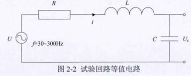 試驗系統簡(jiǎn)化電路如圖2-2所示,其中17為勵磁變壓器高壓繞組的輸出電壓,其頻率通過(guò)變頻電源的控制電路可實(shí)現從30Hz到300Hz連續可調。為串聯(lián)諧振回路的等值電阻,由于高壓電抗器的電感值很大,其繞線(xiàn)電阻占了回路等效電阻的主要部分,一般在百歐以上。
