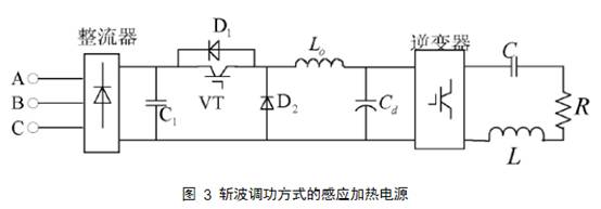 感應加熱電源中的直流斬波調功方式的調功原理如圖 3所示。