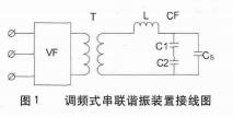 其工作原理為變頻電源V F將380 V交 流電轉換為頻率和幅值都可調節的電壓, 再將調節后的電壓送給變壓器T的低壓側 升壓后,進(jìn)入由電抗器L、電容分壓器CF以 及被試驗設備C S成的串聯(lián)諧振回路。根據 諧振的原理,此回路的諧振頻率與電抗器 的電感L、分壓電容器的電容C以及被試驗 設備的電容C S相關(guān)。其試驗過(guò)程為使裝置輸出較小的電壓,調整頻率至串聯(lián)諧振回 路發(fā)生諧振;再加大電源的輸出電壓,觀(guān)測 試驗設備上施加的電壓大小,當此電壓達 到目標值時(shí)停止增大電壓。此串聯(lián)諧振裝 置接線(xiàn)方式的等值電路圖如圖2所示。