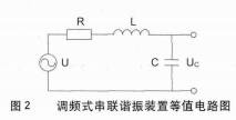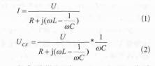 圖2中, U為變壓器高壓側輸出的電壓, R為回路的等效電阻,L為回路的等值電感, C為回路的分壓器電容與測試設備電容之 和。因此,串聯(lián)諧振回路中電流I的大小以 及測試設備上施加的電壓UCX大小如下式 所示。